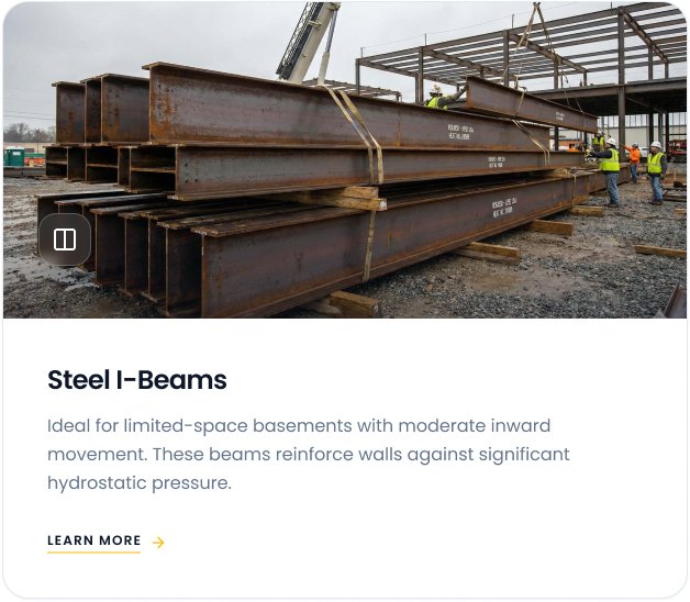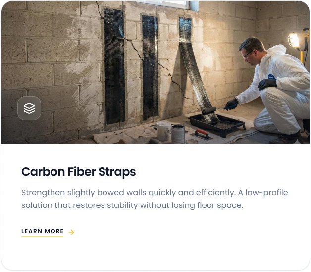 We use carbon fiber straps, wall anchors, steel I-beams, or helical push pier systems as needed.