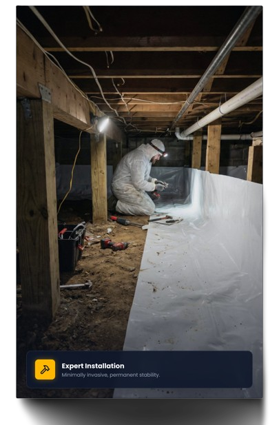 Moisture and structural problems in your crawl space do not stay hidden—they spread throughout your home. We provide permanent solutions for: