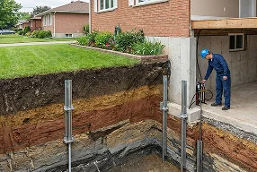 Helical and push piers stop settlement by transferring your home’s weight to stable soil or bedrock.